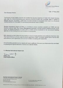 नई दिल्ली,17 मई । मुंबई के छत्रपति शिवाजी महाराज अंतरराष्ट्रीय हवाई अड्डे (CSMIA) पर शुक्रवार को एक बड़ा प्रशासनिक और सुरक्षा आधारित फैसला लिया गया। मुंबई इंटरनेशनल एयरपोर्ट लिमिटेड (MIAL) ने तत्काल प्रभाव से ग्राउंड हैंडलिंग सेवाएं प्रदान कर रही कंपनी Celebi NAS की सेवाएं रद्द कर दी हैं।