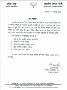 जिसमें भारतीय जनता पार्टी की 5 महिला सांसदों के नाम शामिल है। इस समिति का संयोजक राज्यसभा की सांसद सरोज पांडे को बनाया गया है, वही इसके अलावा भी पार्टी की चार महिला सांसदो को इस समिति का सदस्य बनाया गया है।