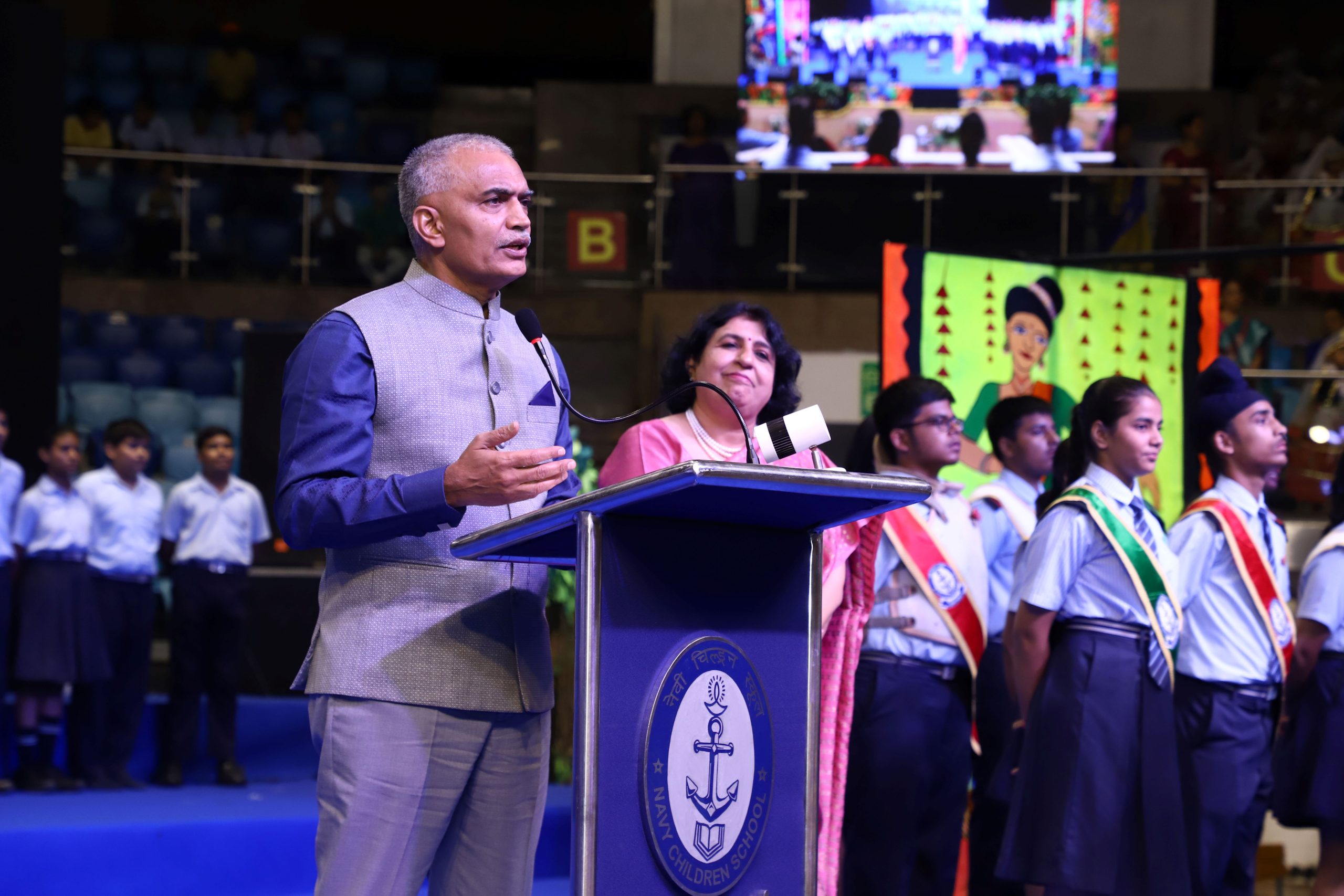 नई दिल्ली, 25अगस्त। नेवी चिल्ड्रन स्कूल (एनसीएस), दिल्ली ने बुद्धवार को तालकटोरा इंडोर स्टेडियम में अपना वार्षिक उत्सव मनाया। इस अवसर पर नौसेना प्रमुख, एडमिरल आर हरि कुमार, मुख्य अतिथि के रूप में उपस्थित थे। समारोह में नौसेना के वरिष्ठ अधिकारियों, गणमान्य व्यक्तियों और अभिभावकों ने भी भाग लिया। इस आयोजन का विषय ‘उद्भवम’ था, यह एक संस्कृत शब्द है जो शाश्वत शिक्षा और स्थायी ज्ञान के ‘आरंभ’ का प्रतिनिधित्व करता है।