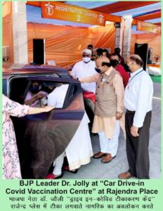 हेमकुंट बिल्डिंग, राजेन्द्र प्लेस, नई दिल्ली स्थित ‘‘नई दिल्ली स्वास्थ्य केंद्र’’ में ‘‘ड्राइव इन – कोविड टीकाकरण केंद्र’’ जा कर भाजपा नेता डॉ जौली ने, आयोजकों व टीका लगवाने वालों का उत्साह वर्धन किया।