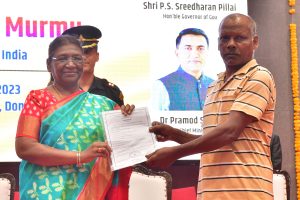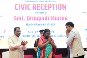 नई दिल्ली, 23अगस्त। भारत की राष्ट्रपति श्रीमती द्रौपदी मुर्मू ने 22 अगस्त मंगलवार को राजभवन, गोवा में उनके सम्मान में गोवा सरकार द्वारा आयोजित नागरिक अभिनंदन में भाग लिया। इस अवसर पर उन्होंने कुछ लाभार्थियों को वन अधिकार अधिनियम के तहत ‘सनद’ भी वितरित की।