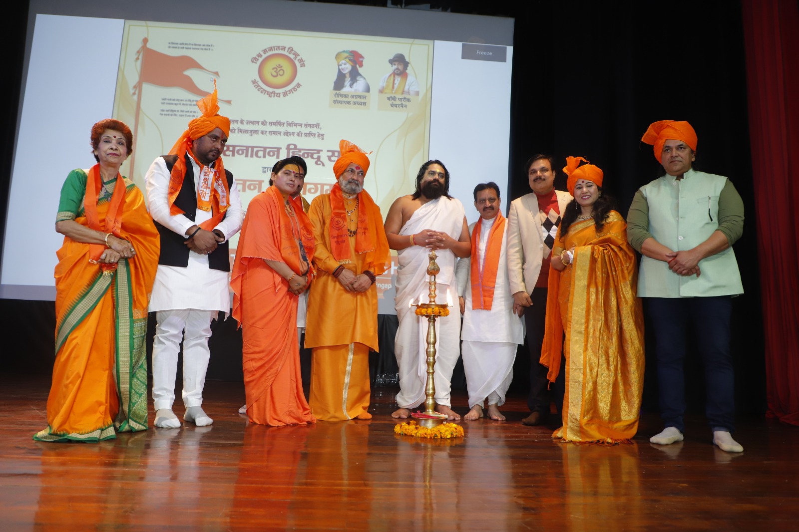 कार्यक्रम का शुभारंभ सभी ने दीप प्रज्वलन कर और वंदे मातरम् की करतल ध्वनि के साथ किया। सनातन सेना के राष्ट्रीय महा सचिव और प्रवक्ता डा उमेश तिवारी के सम्मान और उद्बोधन से समागम को गति प्रदान हुई। उज्जैन से आध्यात्म योग के योगी अनुव्रत अनिमेष जी ने विश्व सनातन हिंदू संघ के इस प्रयास की सराहना करते हुए अपना पूर्ण सहयोग देने का आश्वासन दिया। मंदिर पुजारी प्रकोष्ठ भाजपा से श्री करनैल सिंह जी ने इस कार्यक्रम में 32 संगठनों को साथ लाने के प्रयास पर अनेकों शुभकामनाएं दीं व पूर्ण सहयोग का आश्वासन दिया। राष्ट्र कवि श्री गजेंद्र सोलंकी जी ने अपनी राष्ट्रवादी कविताओं से खूब समां बांधा। इसके अतिरिक्त अखिल भारतीय गौ सेवक के संस्थापक आचार्य गौदास, ग्लोबल संत समाज से स्वामी चंद्र देव जी महाराज, अखिल भारतीय करणी सेना के राष्ट्रीय अध्यक्ष ठाकुर शेखर चौहान, राष्ट्रीय स्वयं सेवक संघ के प्रचारक माननीय लक्ष्मी नारायण जी, राष्ट्रीय अध्यक्ष हिंदू नव निर्माण सेना श्री अमित सिंह राठौड़, स्व श्री शिव कुमारी पारीक जी के बड़े सुपुत्र श्री महेश पारीक जी, राष्ट्रीय अध्यक्ष हिंदू आर्मी श्री संजीव भाटी जी, शंकराचार्य परिषद् जूना अखाड़ा से साध्वी राधा सरन, एसबीआई के पूर्व चेयरमैन श्री रजनीश कुमार जी और बी जे पी के दिल्ली प्रदेश प्रवक्ता श्री खेम चंद जी ने अपने वक्तव्य से सनातन धर्म को सुदृढ़ बनाने के लिए अमूल्य विचार व्यक्त किए। सभा में प्रसिद्ध समाज सेविका चित्र अग्रवाल जी, अंजू दहिया, लता चौहान, योगिता जी, आदि मौजूद रहे। कार्यक्रम का समापन सुश्री रौचिका अग्रवाल और श्री बॉबी पारीक जी ने सभी आए हुए अतिथियों का धन्यवाद करते हुए किया।