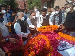 ऊर्जा, मंत्री डॉ. बी.डी. कल्ला के साथ-साथ चिकित्सा एवं स्वास्थ्य मंत्री डॉ. रघु शर्मा, परिवहन मंत्री श्री प्रताप सिंह खाचरियावास, उच्च शिक्षा श्री राज्य मंत्री एवं चूरू जिला प्रभारी श्री भंवर सिंह भाटी, शिक्षा राज्य मंत्री श्री गोविन्द सिंह डोटासरा, महिला एवं बाल विकास राज्य मंत्री श्रीमती ममता भूपेश, श्रम राज्य मंत्री श्री टीकाराम जूली, केन्द्रीय मंत्री श्री अर्जून मेघवाल सांसद श्री राहुल कस्वा, तारानगर विधायक श्री नरेन्द्र बुडानिया, राजगढ विधायक श्रीमती कृष्णा पूनिया, विधायक श्री राजेन्द्र राठौड, विधयक श्री अभिनेष महर्षि , राजस्थान वक्फ बोर्ड के चेयरमैन श्री खानू खां बुधवाली, पूर्व जिला प्रमुख श्री भंवरलाल पुजारी ,पूर्व विधायक श्री मकबूल मण्डेलिया, पूर्व सभापति श्री गोविन्द महनसरिया,श्री पूसाराम गोदारा,श्री गणेश ढाका, जिला कलक्टर डॉ. प्रदीप के. गावंडे, पुलिस अधीक्षक श्री परिस देशमुख, पुलिस महानिरीक्षक श्री प्रफुल्ल कुमार, सामाजिक न्याय एवं अधिकारिता विभाग के आयुक्त श्री ओ.पी. बुनकर, सहित बड़ी संख्या में उपस्थित जनप्रतिनिधियों ने मेघवाल की पार्थिव देह पर पुष्पचक्र भेंट कर श्रद्धाजंलि अर्पित की। राज्य सरकार के मंत्रियों, अधिकारियों एवं जनप्रतिनिधियों ने मेघवाल के बेटे श्री मनोज कुमार को इस दुख की घड़ी में ढाढ़स बंधाया।