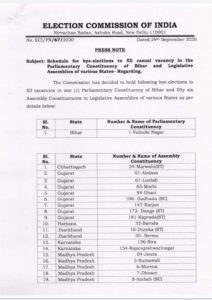 भारत निर्वाचन आयोग ने आज प्रेस नोट की कॉपी जारी की है-