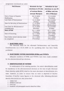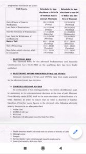 चुनाव की अधिसूचना 9 अक्टूबर को जारी होगी और और नामांकन 16 अक्टूबर तक भरे जा सकेंगे। नामांकन की जांच 17 अक्टूबर को और नाम वापसी की अंतिम तिथि 19 अक्टूबर निर्धारित की गई है।