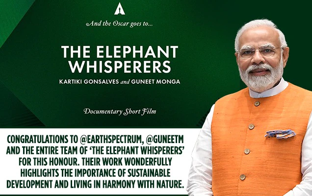 “इस सम्मान के लिए अर्थ स्पेक्ट्रम, गुनीत मोंगा और ‘द एलिफेंट व्हिस्परर्स’ की पूरी टीम को बधाई। उनका काम सतत विकास और प्रकृति के साथ सद्भाव में रहने के महत्व पर अद्भुत रूप से प्रकाश डालता है। #ऑस्कर्स”