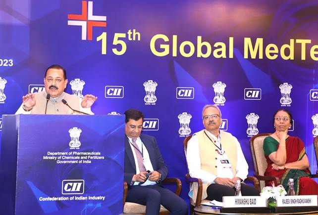 विज्ञान एवं प्रौद्योगिकी राज्य मंत्री (स्वतंत्र प्रभार), प्रधानमंत्री कार्यालय व कार्मिक, लोक शिकायत और पेंशन, परमाणु ऊर्जा तथा अंतरिक्ष राज्य मंत्री डॉ. जितेंद्र सिंह नई दिल्ली में भारतीय उद्योग परिसंघ द्वारा आयोजित 15वें ग्लोबल मेडटेक शिखर सम्मेलन 2023 में उद्घाटन भाषण दे रहे थे।