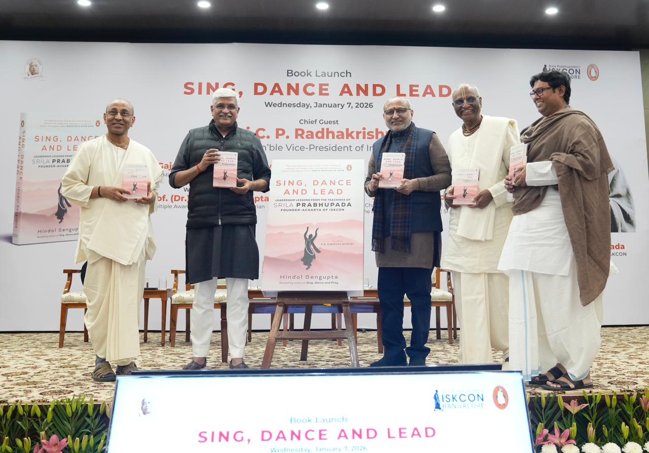 पुस्तक के मूल विचार पर प्रकाश डालते हुए उपराष्ट्रपति ने कहा कि सिंग, डांस एंड लीड यह संदेश देती है कि नेतृत्व आनंदपूर्ण, सहभागी और गहराई से मानवीय हो सकता है। स्वामी प्रभुपाद ने आदेश देने के बजाय प्रेरणा के माध्यम से नेतृत्व किया और सादगी व भक्ति में रचे-बसे रहते हुए स्थायी संस्थानों की नींव रखी।
