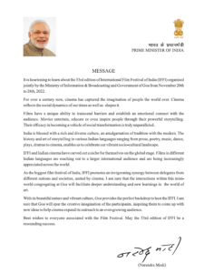 “गोवा में एकत्र होने वाली छोटी सी दुनिया को आपस में बातचीत से कला की दुनिया को गहराई से समझने और नई चीजें सीखने का अवसर मिलेगा”:प्रधानमंत्री