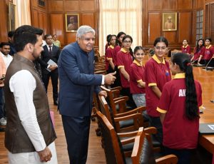 बेटियों से वार्तालाप करते हुए उपराष्ट्रपति ने कहा, “भारत को विश्वगुरु बनाने के लिए आप जैसे युवाओं को आगे आकर इसकी भागदौड़ अपने हाथों में लेनी होगी. आज दुनिया में अगर भारत का डंका बजा है तो उसका एक प्रमुख कारण डेमोग्राफिक डिविडेंट और उसमे भी गर्ल पावर को जाता है. आज पूरी दुनिया में भारतीय मूल का होना एक अलग रूतबा है.” उन्होंने कहा, “आप जहाँ भी जाएँ, आज हो रहे डेवलपमेंट को बारीकी से देखें, समझें. अनुराग ठाकुर एक समर्पित सांसद व कर्तव्यनिष्ठ मंत्री हैं। अपने संसदीय क्षेत्र के विकास में उनके प्रयास सराहनीय हैं। मुझे यह देख कर हर्ष होता है कि उन्होंने सांसद भारत दर्शन जैसी अनूठी योजना की शुरुआत की जो आप जैसे युवाओं के सर्वांगीण विकास में बहुत बड़ी भूमिका निभा रही है। मेरी आप सभी को व अनुराग जी को हार्दिक शुभकामनाएँ।