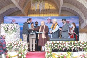 जम्मू, 25अक्टूबर। केंद्रीय गृह एवं सहकारिता मंत्री श्री अमित शाह ने अपनी जम्मू-कश्मीर यात्रा के तीसरे दिन आज श्रीनगर में विभिन्न विकास परियोजनाओं का लोकार्पण और शिलान्यास किया। इस अवसर पर जम्मू कश्मीर के उपराज्यपाल श्री मनोज सिन्हा और केन्द्रीय मंत्री डॉ. जितेन्द्र सिंह समेत अनेक गणमान्य व्यक्ति भी उपस्थित थे।